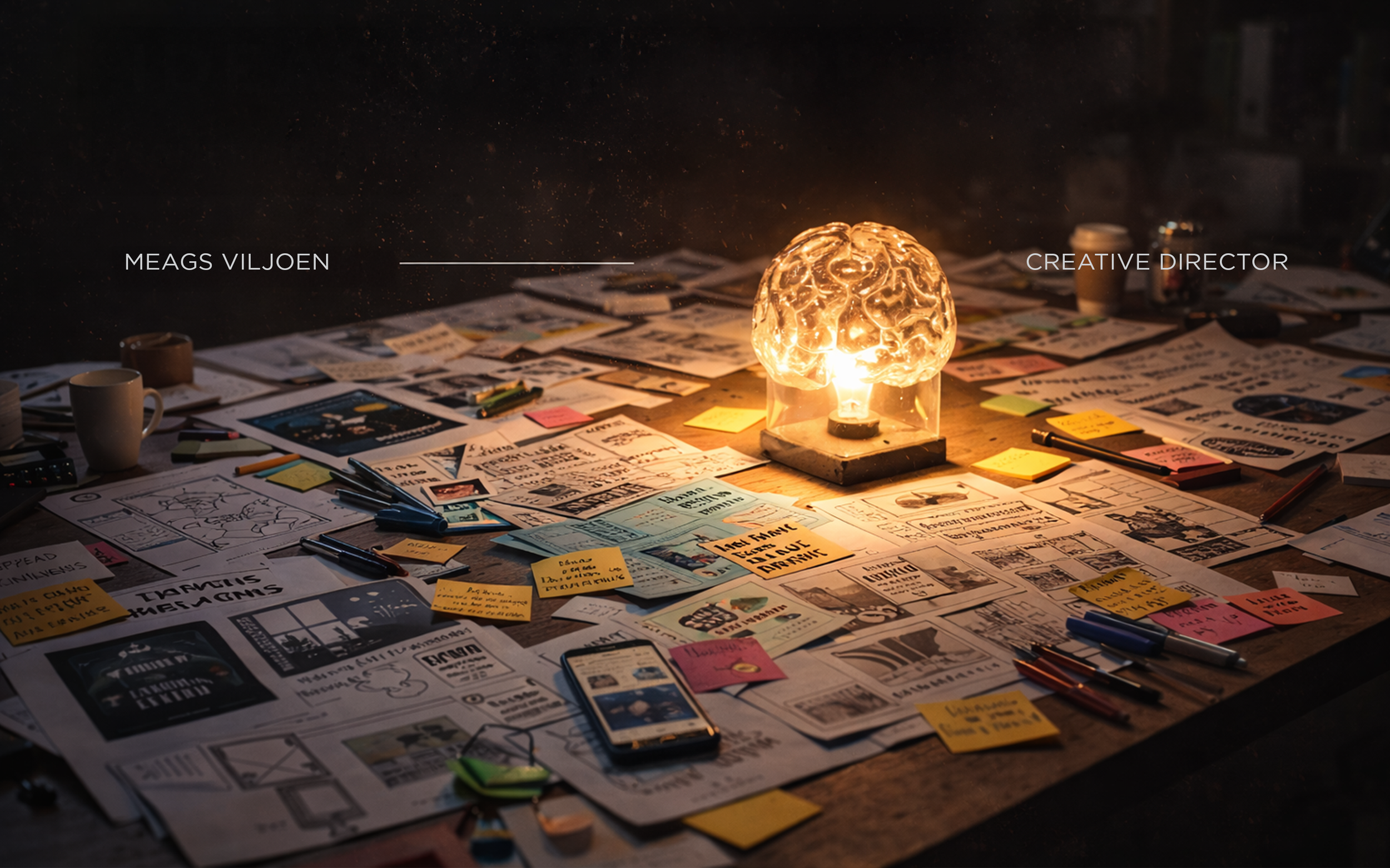 My name is Meagan Viljoen [wave]. I’m a Creative Director and Art Director specialising in brand storytelling and campaign ideas that live across culture, design and digital. I focus on ideas that travel across channels and cultures.